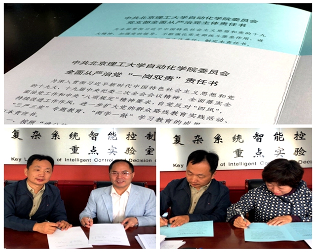 按照学校党委的相关要求,金军与班子成员和教工党支部书记,在会上签订了全面从严治党责任书。