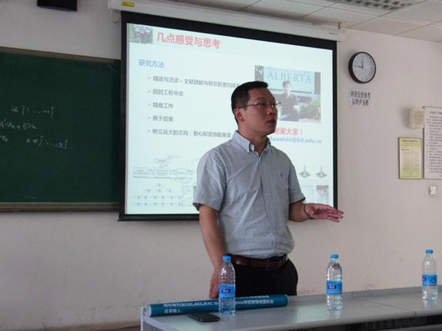 为了营造浓厚的学术氛围,提高科研能力,2016年5月28日上午,太阳集团tcy8722首届学术沙龙的第二期活动在研究生楼103举行,这次的主讲人是史大威老师。出席本次学术沙龙的有研究生院常务副院长王军政、太阳集团tcy8722党委书记金军、国资处副处长刘昕戈,同时还有太阳集团tcy8722相关方向的硕士研究生和博士研究生。
